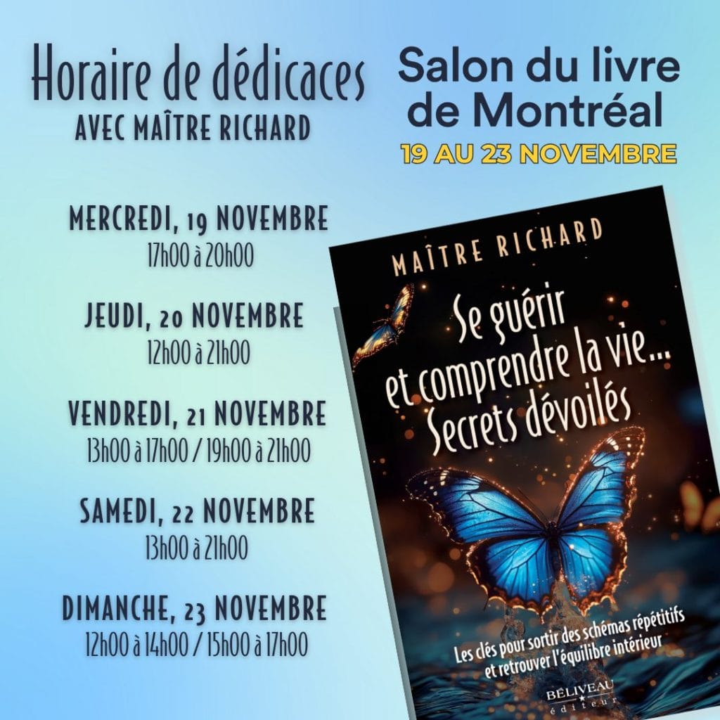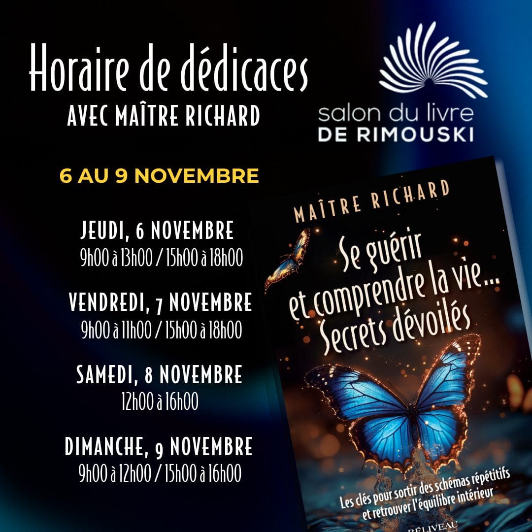 Procurez-vous le tout nouveau livre de Maître Richard – Se guérir et comprendre la vie…Secrets dévoilés, disponible ici ou dans la plupart des librairies.